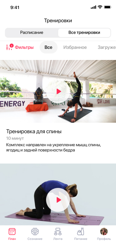 По подписке доступны все 11 программ. В каждой из них — не только упражнения. Ещё вас ждёт индивидуальный план питания, медитации, подкасты с диетологами, расписание активностей на день. Переключайтесь между программами в любой момент, проходите по очереди или все сразу